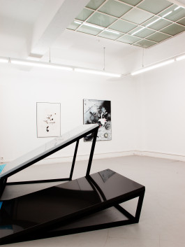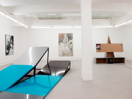 Einen energetischen Empfang bereitet Mattijs Bredevolt mit blinkender Leuchtschrift und hölzern-malerischem Flipperautomaten in scheinbar ungebrochener Umsetzung vergnügungsindustrieller Vorstellungsbilder. Dann öffnet die membranbespannte, farbige Rampenkonstruktion von Sebastian Wickeroth die "BLAST Arena" wie ein unbetretbares Sprungbrett in den Raum. Seine Arbeit katapultiert den Besucher geradewegs in Max Schulzes Bild mit fliegenden Formsplittern und schwebenden Linien, deren Verquickung von zufällig entstandenen und kompositorisch gesetzten Partien den Malprozess selbst zum Thema machen. In einem unerklärlichen Crash scheint Ulrike Möschels Rutsche buchstäblich vor die Wand gefahren, um hier mit deformiertem Korpus und geborstenen Gliedmaßen einen Balanceakt von geradezu tänzerischer Fragilität und Eleganz zu vollführen. Die abstrakt-möbelhafte Skulptur von Tamara Lorenz spielt ebenfalls mit einer offenen figurativen Anmutung, die sich über separate Ansichtsseiten ergibt: geometrische Strenge und geschlossene graue Körper auf der einen und offene Fächer als Bilder-Display auf der anderen Seite. Anneke Ingwersens Videoarbeit entfaltet eine ganz eigene Raumtemperatur in der Black Box, wo pulsierende Lichtfiguren einer Choreografie von Annäherung und Distanz folgen, ohne wirklich fassbar zu werden.